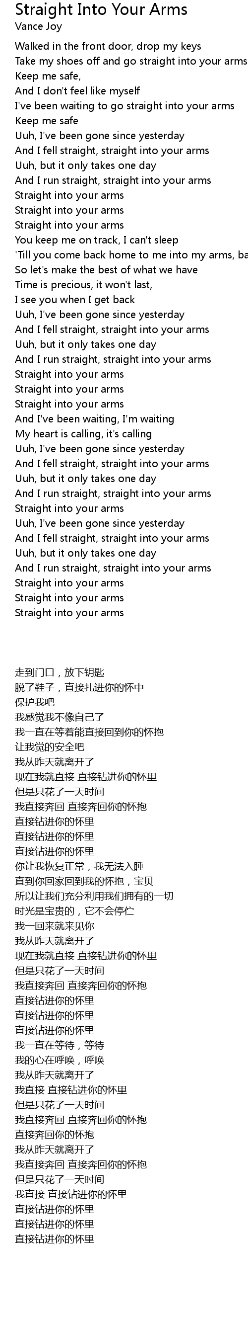 Straight Into Your Arms Lyrics ... | 500x2650 px
